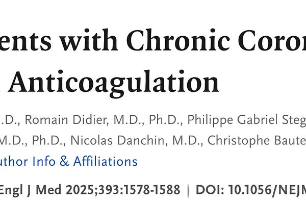 For years and decades, doctors thought that patients with CAD and AF required both aspirin and anticoagulants. Gosh were we wrong.