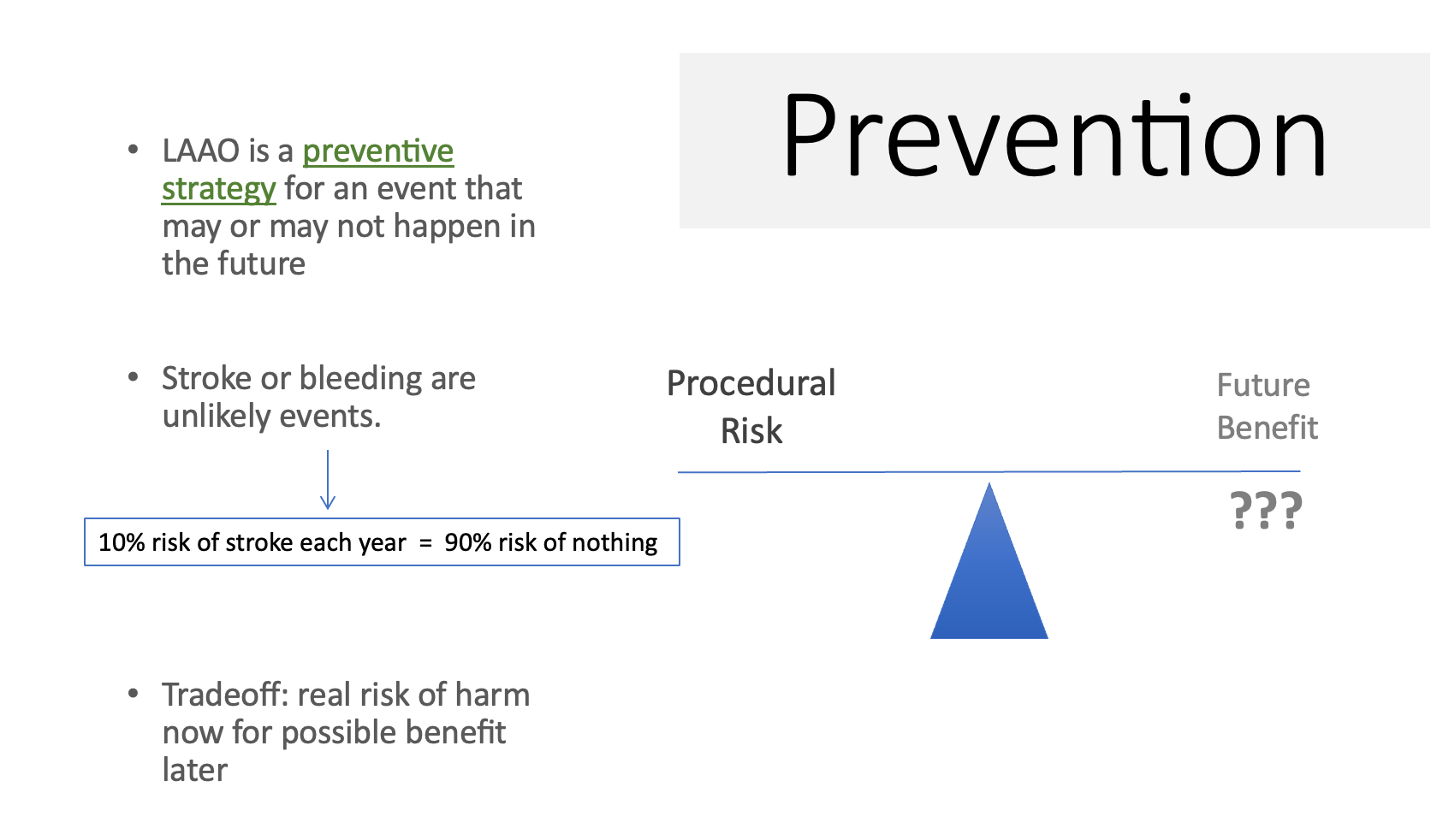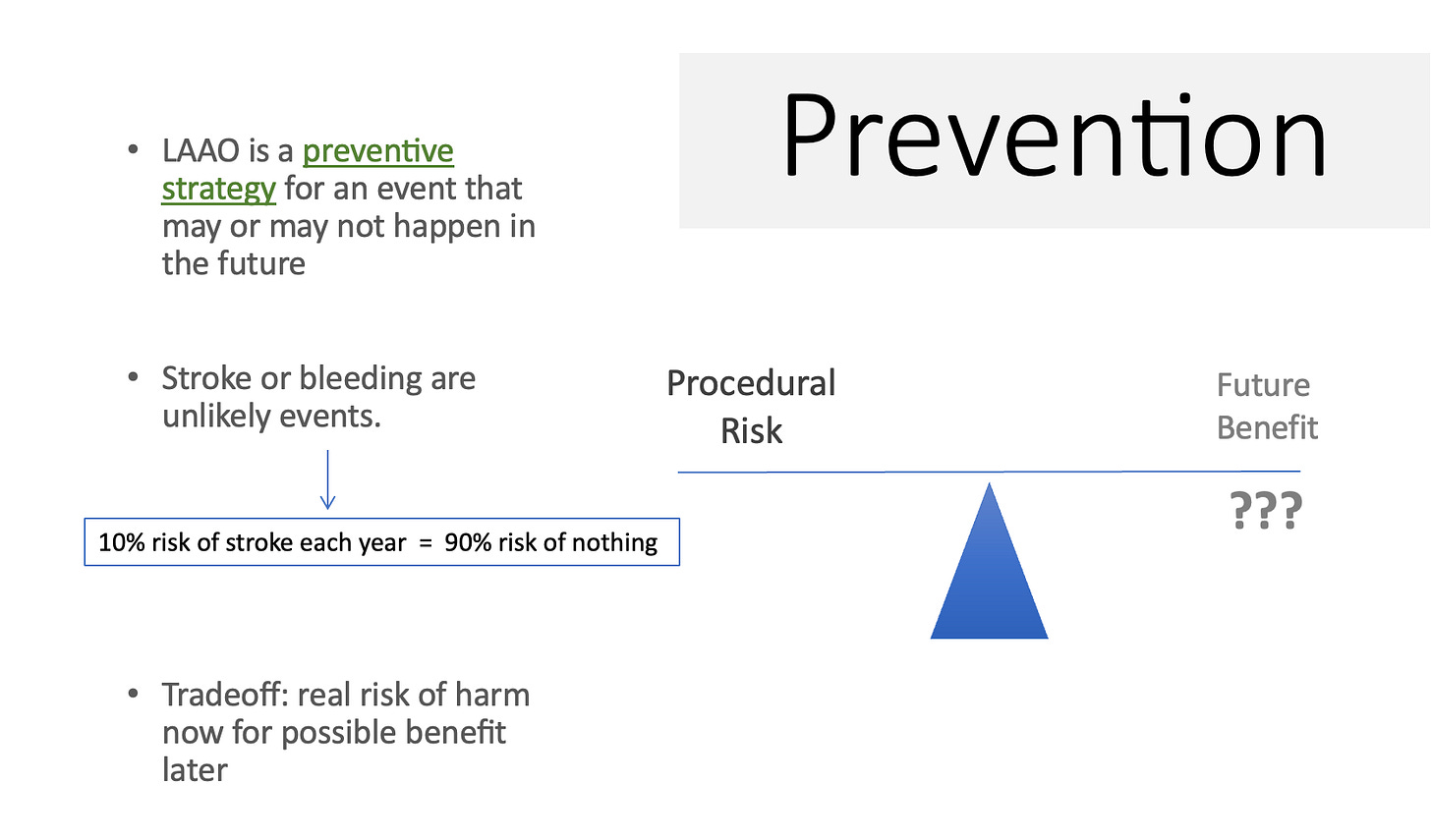 It points out that patients who have LAAC face a finite risk of procedural complications. You cannot do anything to a person without risk of harm. Let’s say it is 2%. Now you have to believe that that device will provide a > 2% better probability of stroke prevention and bleeding reduction going forward.