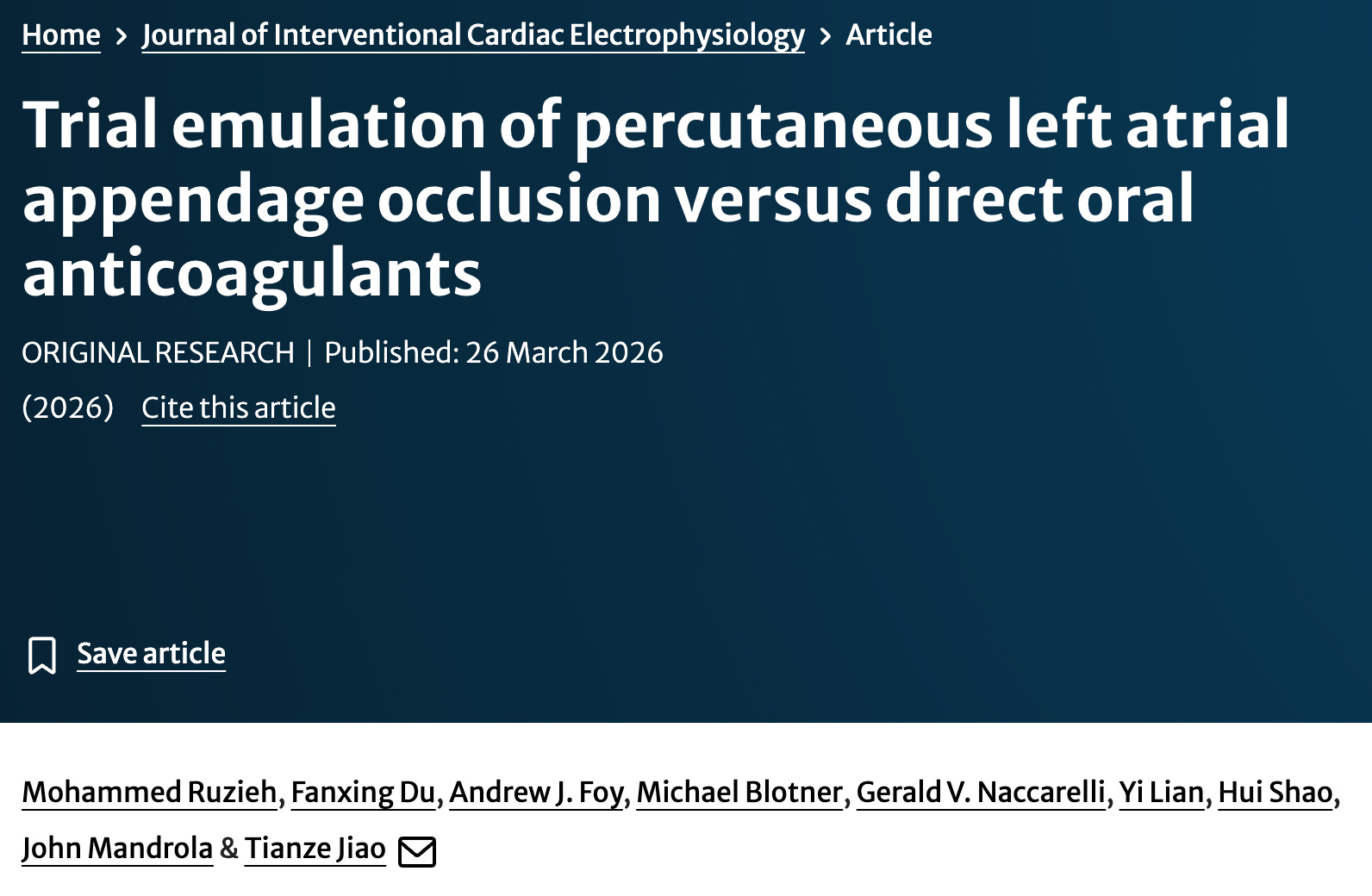 Dr Ruzieh is too nice to say this but I will. This observational study was rejected by numerous journals before landing in the Journal of Interventional Cardiac Electrophysiology. You might argue that it was rejected because it was an observational nonrandomzied comparison study, which are often marred by bias. That’s possible, but in the many months it was being rejected at various journals, these same journals published a slew of other similar observational studies. Publication bias is not obvious but is important to consider when reading the medical literature. JMM