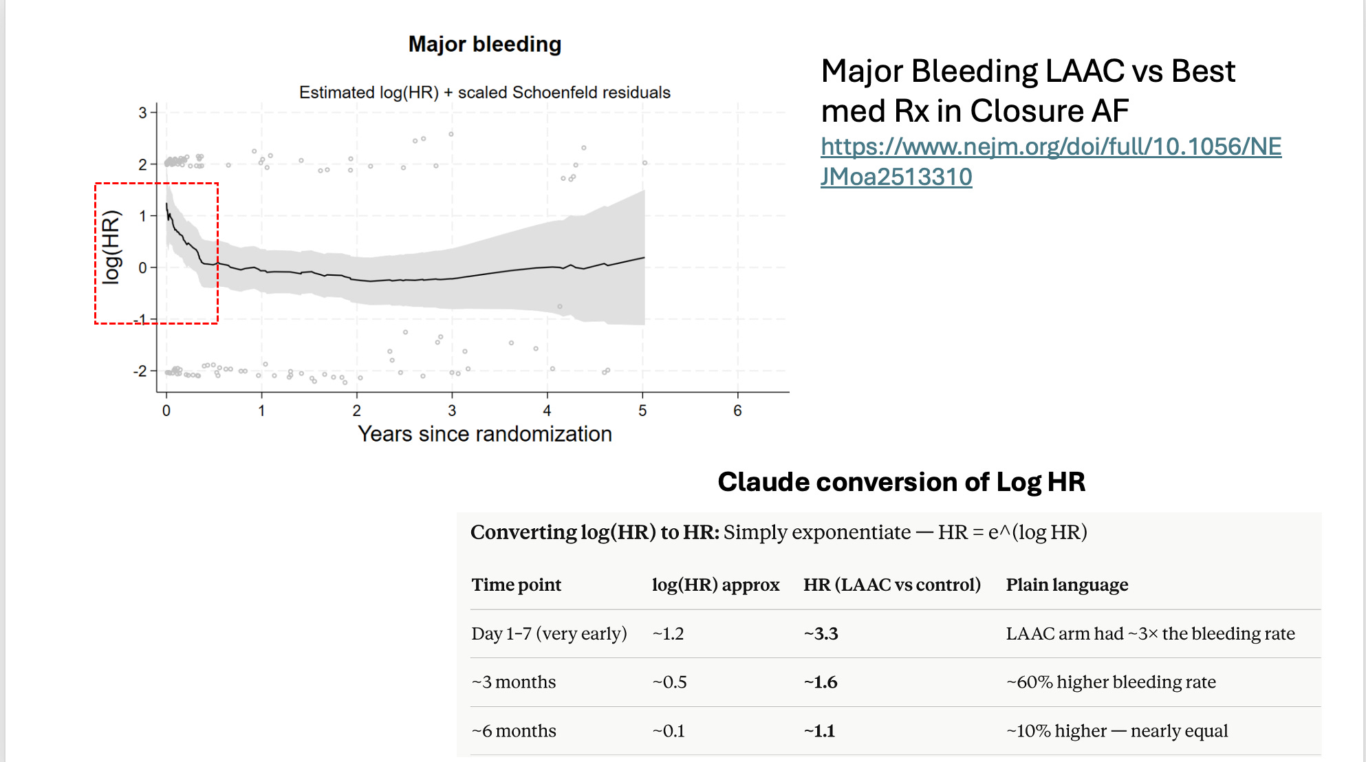 Additionally, patients typically continue aspirin indefinitely after pLAAO, which may not be safer than apixaban. The device implantation itself can cause bleeding too. While early separation of curves favoring the intervention in observational studies could reflect residual confounding, a point we previously discussed, this is unlikely in this case.
