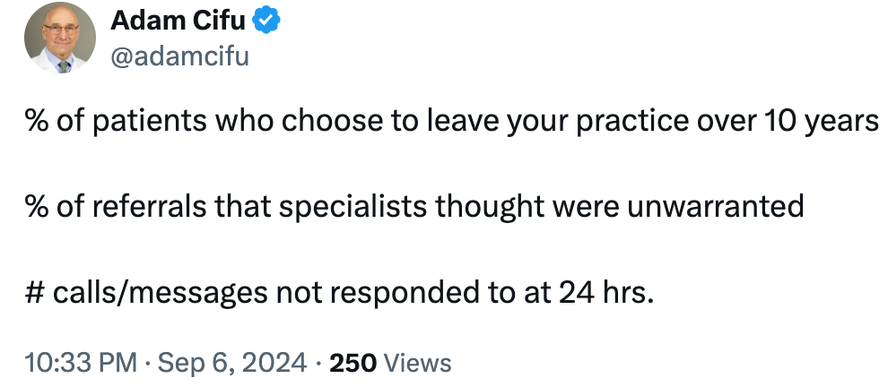 Alternative incentives to improve efficiency, continuity, and patient satisfaction. Consider Cifu’s Quality Measures: