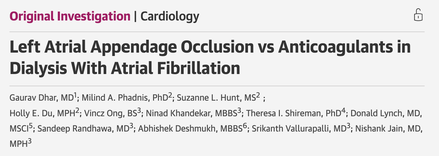 The authors chose 2344 patients who developed AF after beginning dialysis (mostly hemodialysis). One group of 293 patients received LAAO and 2051 received OAC. These are obviously unmatched non-random groups.