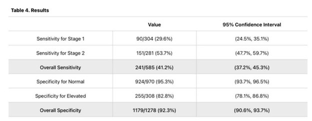 The first of these additional aspects is the user’s pre-test probability of hypertension. Assuming some hypothetical validity of hypertension detection by Apple Watch PPG, and given its relatively higher specificity, such a tool would be indicated not as a screening test, but rather as a confirmatory test—used in the clinic or in a primary care setting, not in the community.
