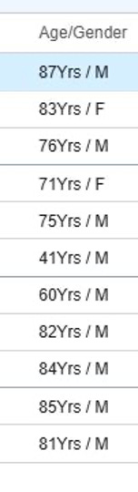 I didn’t move after 3 years, or 5 years, or 10 years. As I push up against 30 years, many of the people I started caring for in the late ’90s still see me. Although I haven’t aged a single day, these patients are now in their 70s, 80s, and 90s. There are even a few who have reached their 11th decade. Here is the Age/Gender column from my Epic schedule on the day I begin writing this post.1