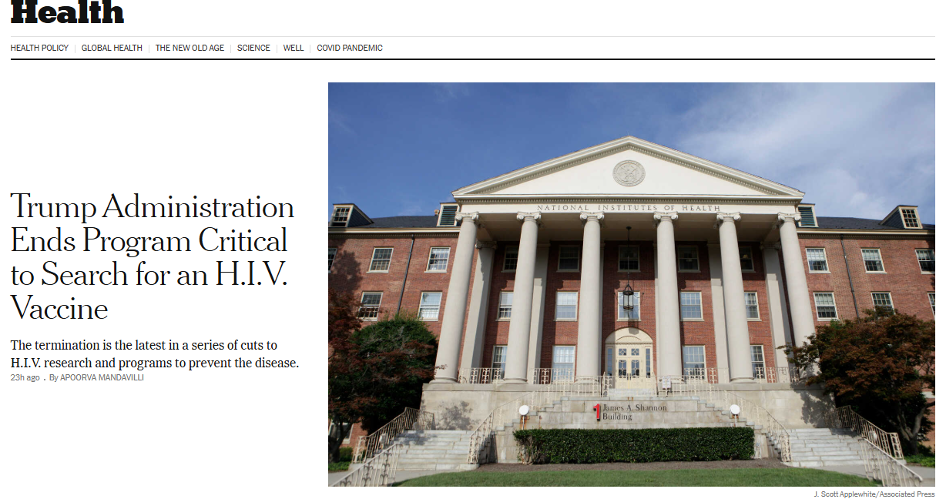 It is with this background that I read the news today that the NIH is cutting funding for HIV vaccine programs.